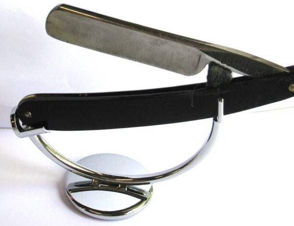Scheermes wordt gereinigt-gepolijst en scheerklaar gelevert in papier maché box.