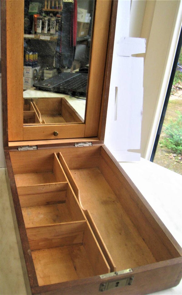 Mooie antieke scheerkist om al je scheerspullen in op te bergen ,met vakindeling.