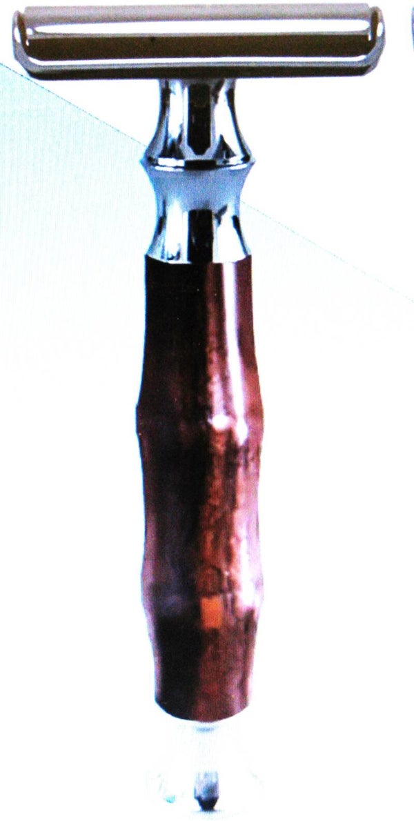 Mooi luxe roestvrijstalen Scheermes 3 delig schroefdraad en ebbenhouten handgreep.