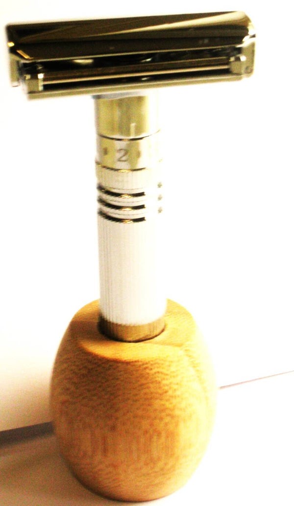 Aquarius shaving 18T Verstelbaar scheermes Zilver+bamboe standdard+10 mesjes.