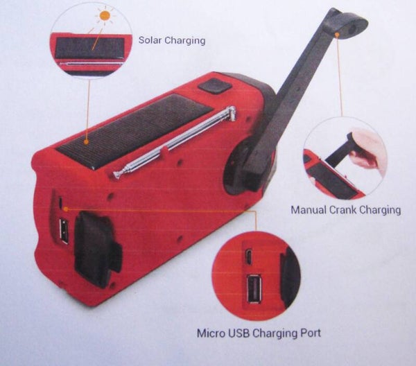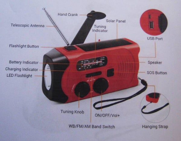 Uitgerust met USB kabel-een comfortabele handslinger om stroom op te wekken-Een zonnepaneel om stroom op te slaan.De radio ondersteunt AM/FM/ kanalen blijft u op de hoogte van weer en gevareninformatie.