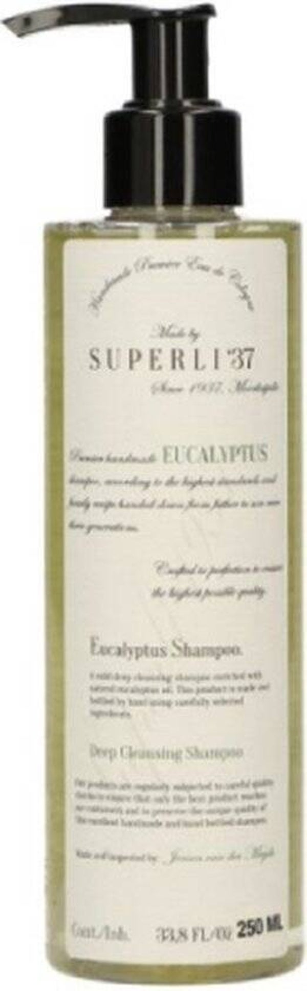 Superli 37 Hangemaakte Eucalyptus Reinigende shampoo 250ml-met pompje.