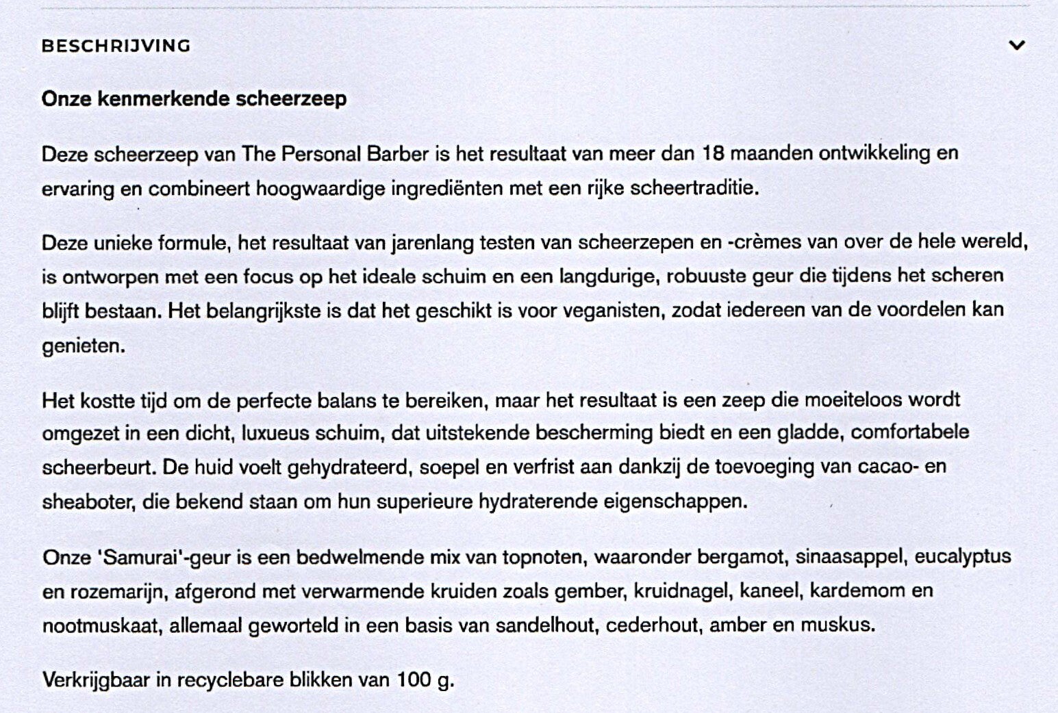 The Personal Barber Samurai Vega vriendelijke scheerzeep 100 gram-In blik.