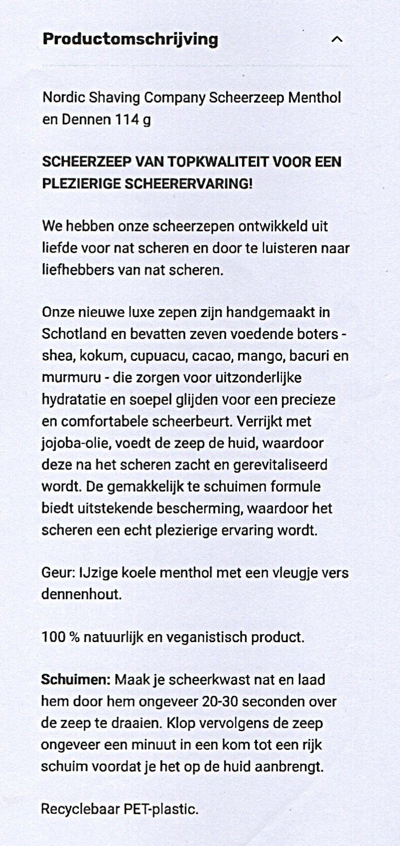 Nordic Shaving Company Menthol&Dennen scheerzeep 114 gram
