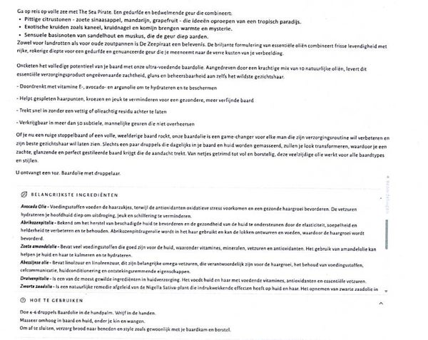 Old Town The Sea Pirate Vega Baardolie 30ml -met Pipet