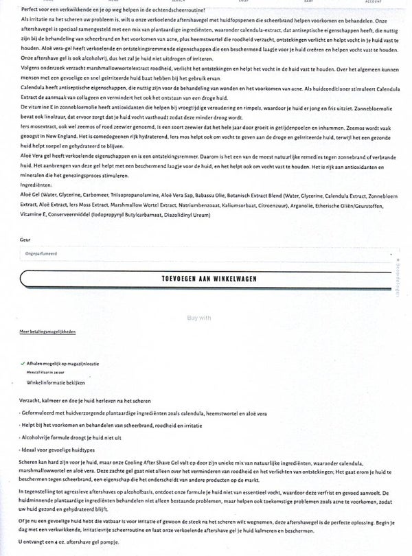 Helpt bij het voorkomen van scheerbranden,roodherid en irritatie.