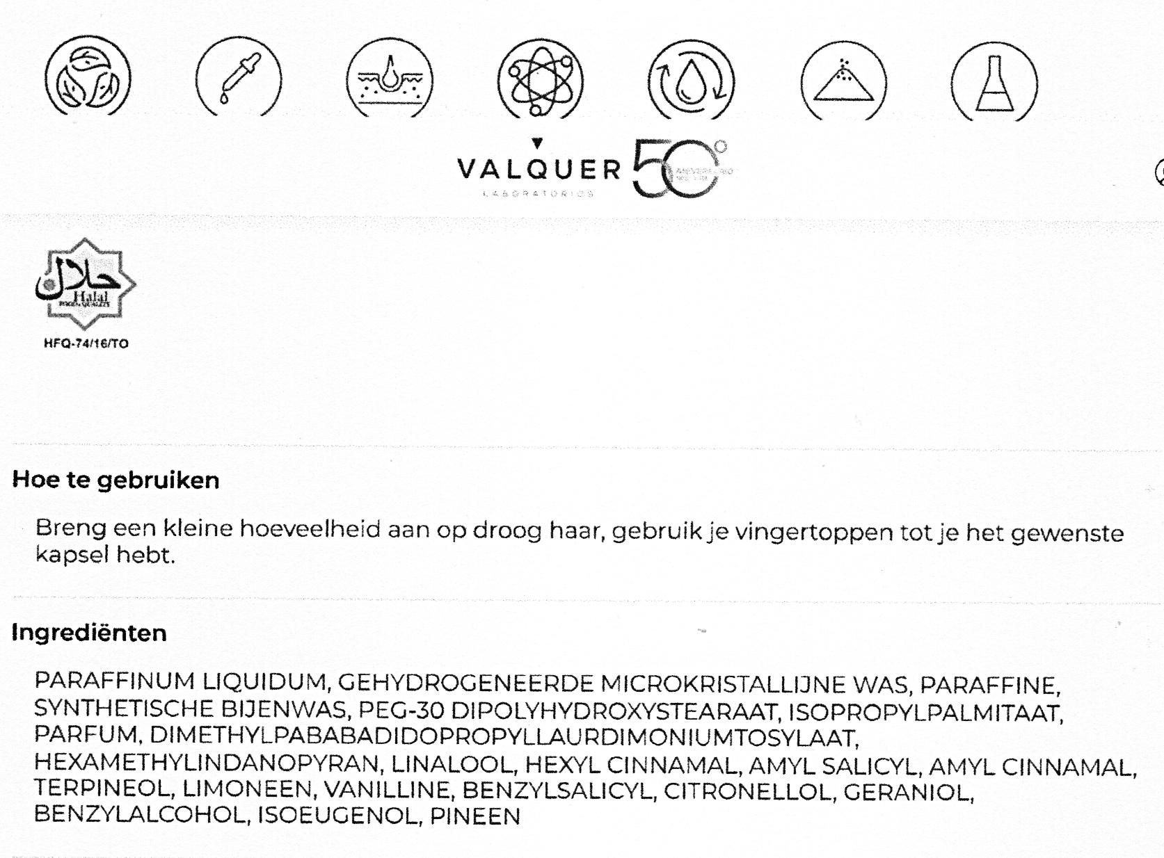Valquer Hairstyle Normal 100% Vega Glanzende wax 100ml