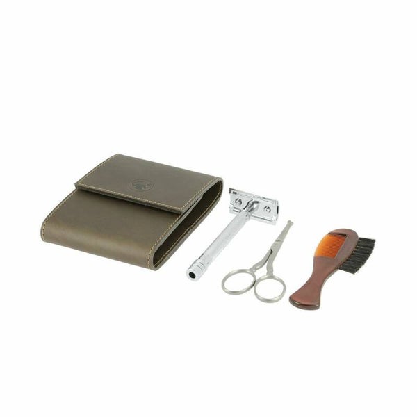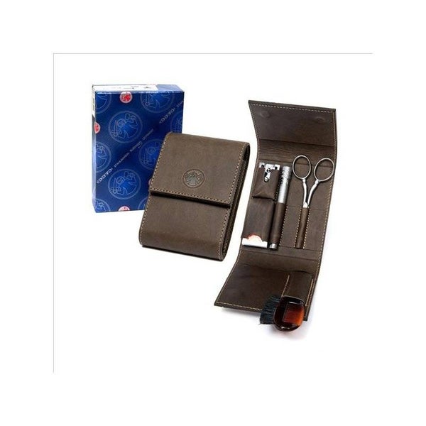 Dovo Scheerset Luxe Baard en Snorrenset 5 delig in bruinleder etui-No.575056