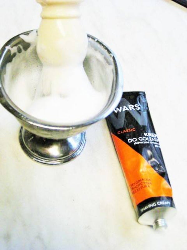 Verzacht de baardharen voor het scheren,geeft een rijk schuim.