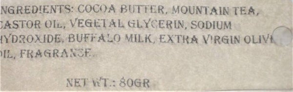 Met Cacaoboter-Bergthee- -Buffelmelk-Chelmos base-100% natuurlijk.