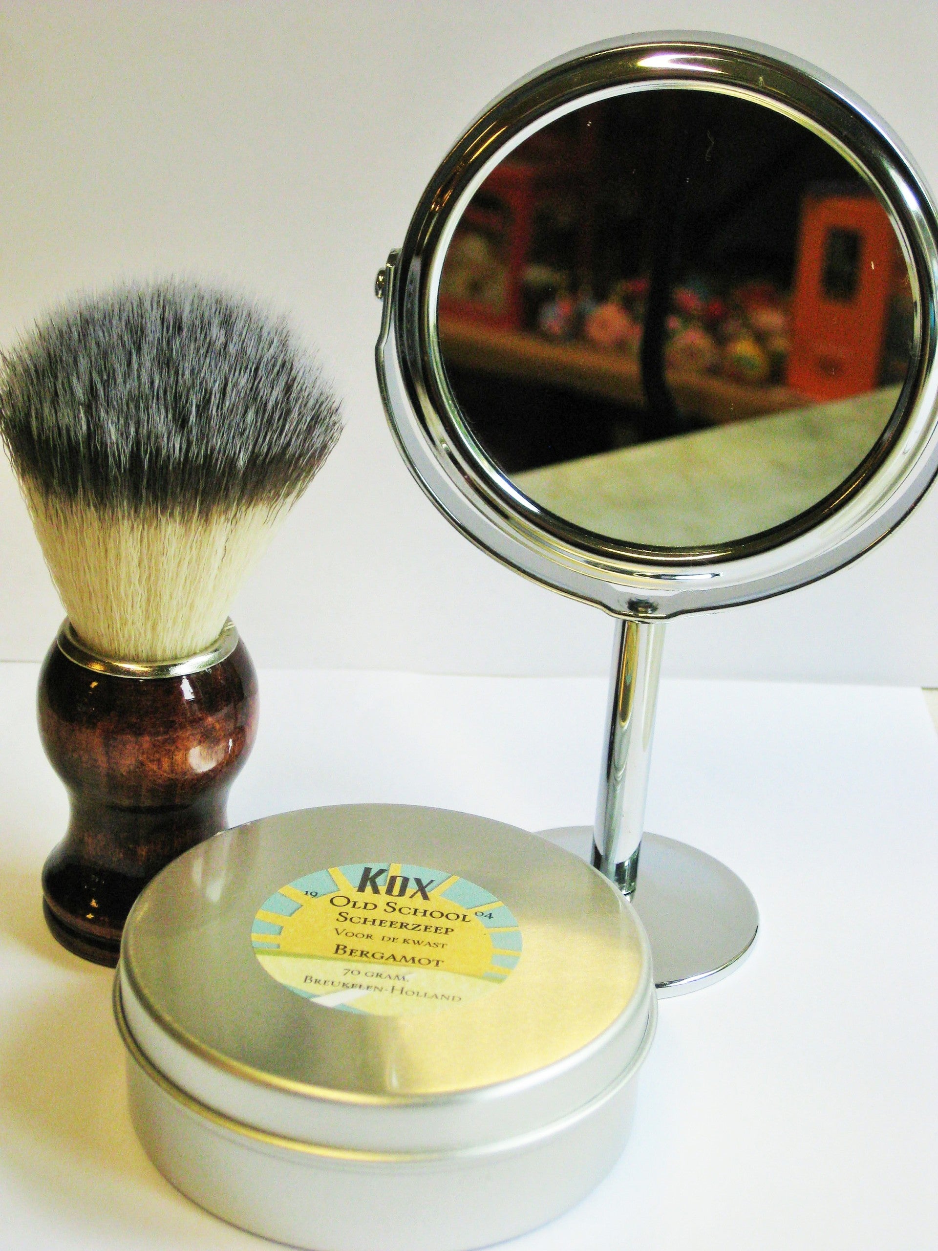 Kox 3 delig scheerset.Kwast-Spiegel- scheerzeep-.No.233