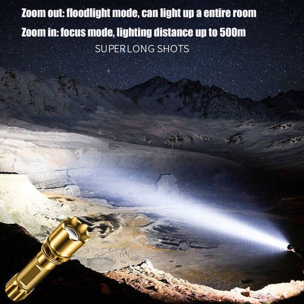 Hoge helderheid led mini zaklamp met instelbare zoomfunctie doormiddel van het na voren en na achteren brengen brengen van de voorzijde van de zaklamp.